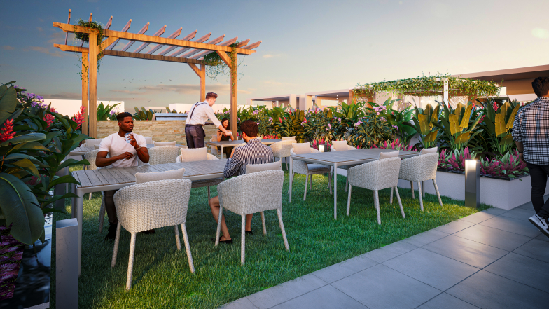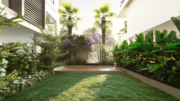Landscaped open zones that foster peace, community, and natural light.